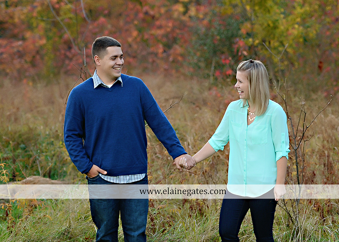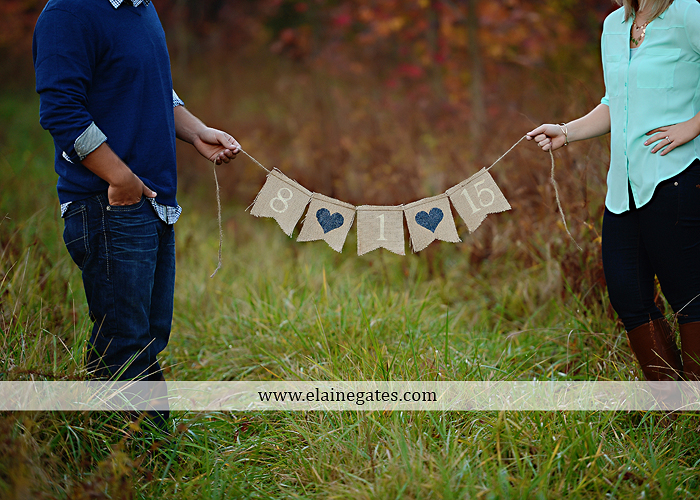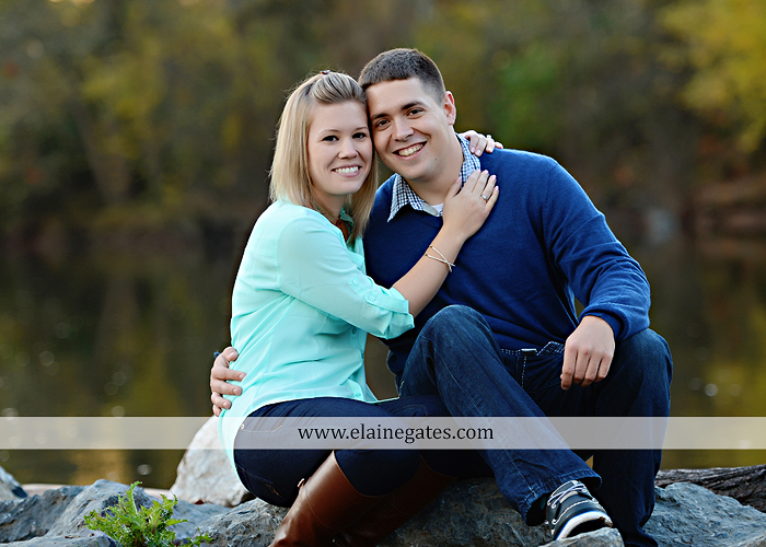 Mechanicsburg Central PA portrait photographer engagement outdoor fall leaves trees couple hug embrace kiss dog covered bridge holding hands field date rocks {Megan P. & Cory K.}