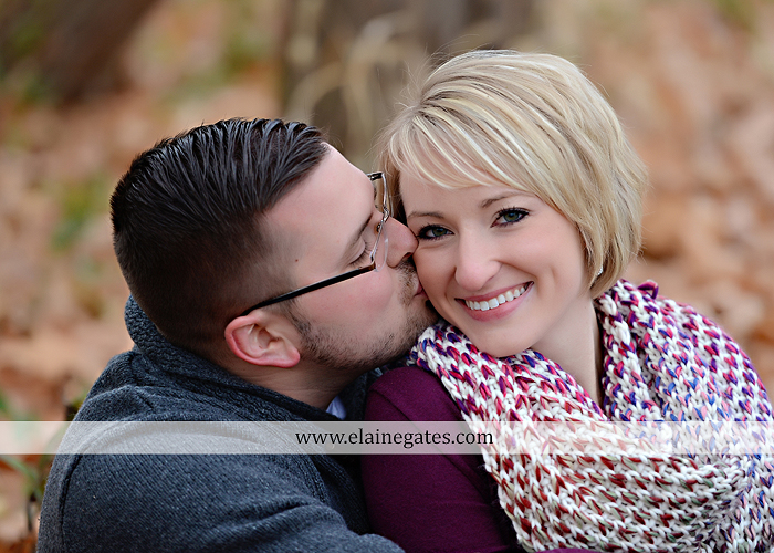 Mechanicsburg Central PA portrait photographer engagement outdoor water creek stream holding hands couple trees hug dog dock field lake leaves fall kiss {Joanna D. Engagement}