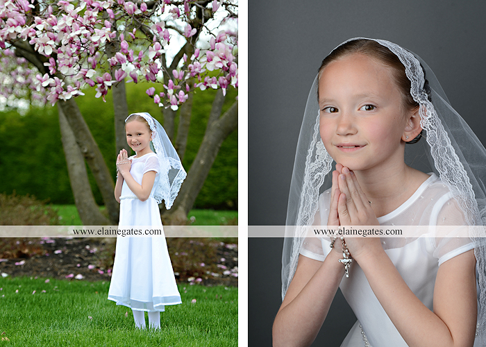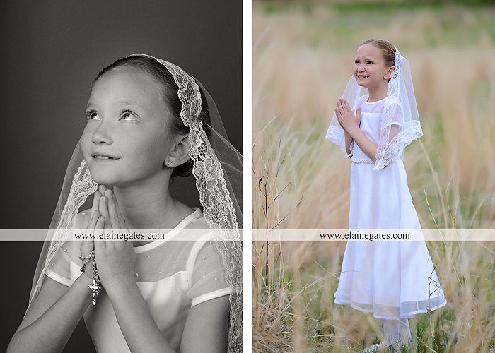 Mechanicsburg Central PA portrait photographer children kids girl outdoor holy communion pray cross rosary field flowers tree grass {Annaliese D.}