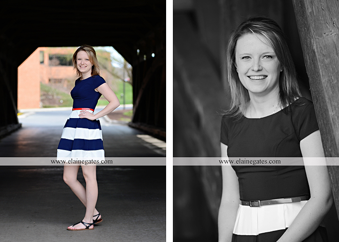 Mechanicsburg Central PA senior portrait photographer outdoor graduate messiah college covered bridge steps brick trees water creek stream {Katelyn M.}