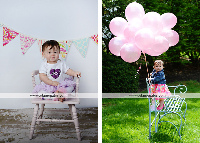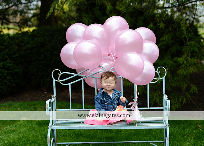 Mechanicsburg Central PA portrait photographer first birthday girl daughter family parents mother father chair bench balloons banner hug walk grass trees flowers {“V” Family}