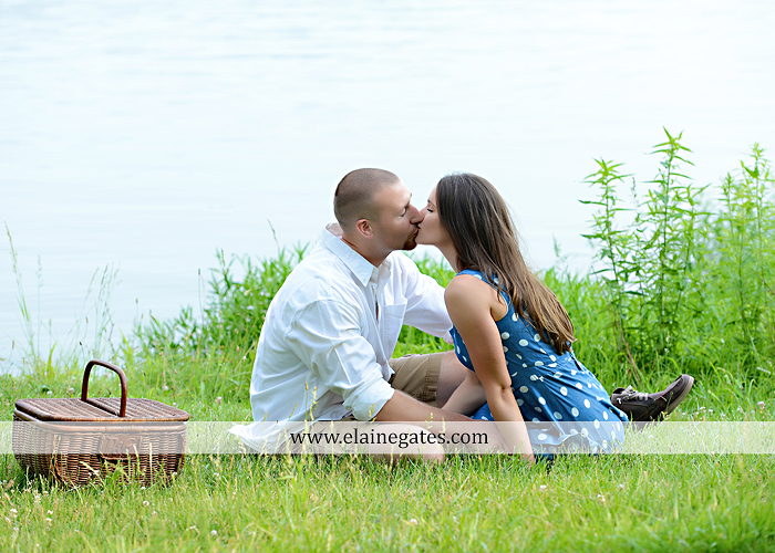 Mechanicsburg Central PA portrait photographer engagement outdoor couple water trees grass field dock water lake fishing lure boat holding hands picnic basket kiss path the notebook {Paige H.}