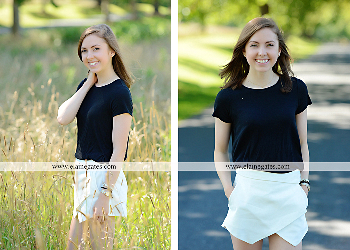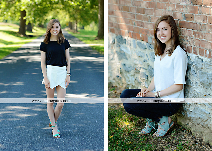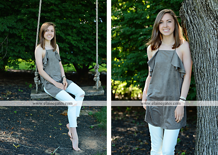 Mechanicsburg Central PA senior portrait photographer outdoor girl female grass water stream creek tree fence field road brick wall stone wall sunflowers wildflowers hammock swing bench formal {Kenzie L.}
