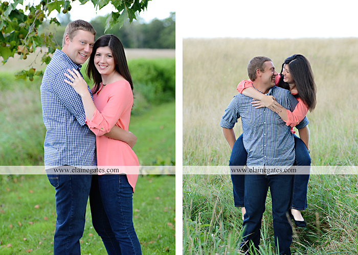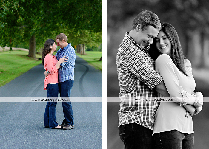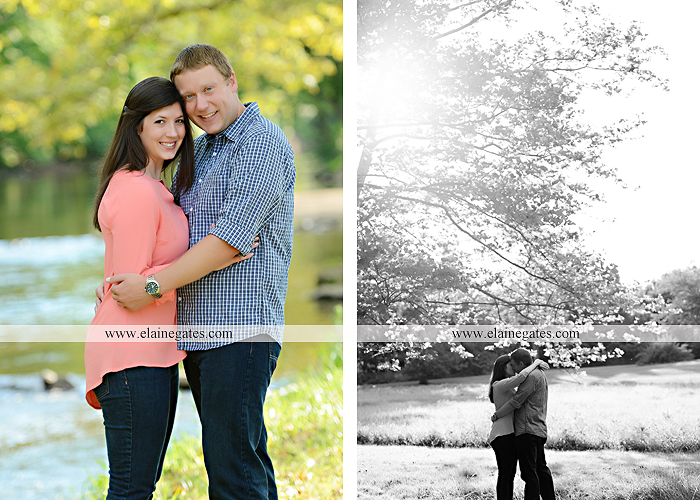03 Nov Mechanicsburg Central PA engagement portrait photographer outdoor road trees field fence water stream creek couple kiss hug holding hands {Staci T.}