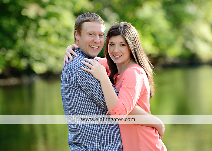 Mechanicsburg Central PA engagement portrait photographer outdoor road trees field fence water stream creek couple kiss hug holding hands {Staci T.}