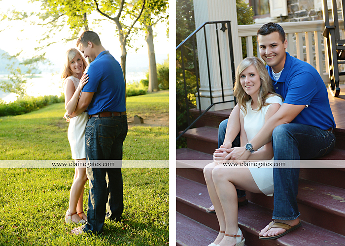 Mechanicsburg Central PA engagement portrait photographer outdoor dogs grass water susquehanna river bridge rocks steps porch fence trees {Heather G.}