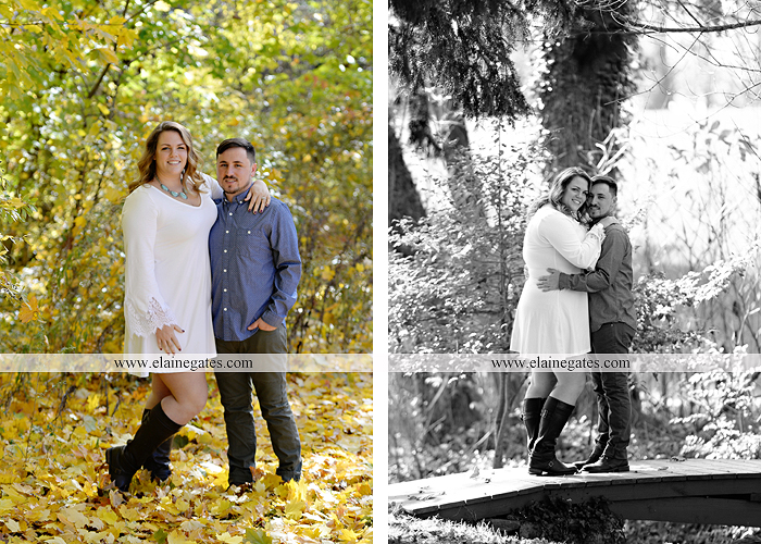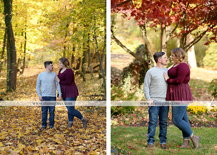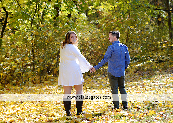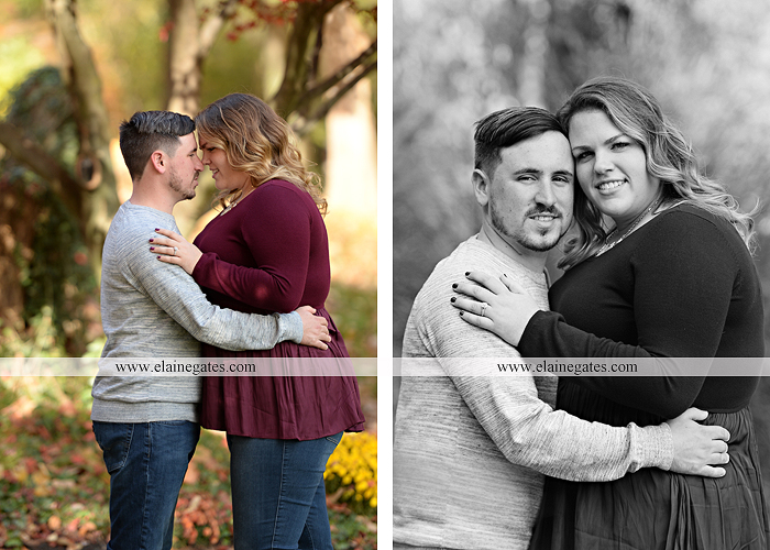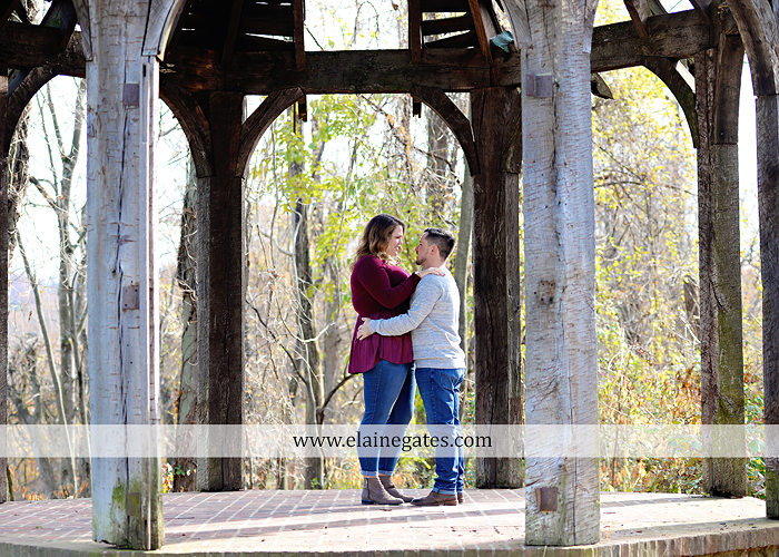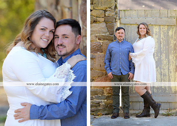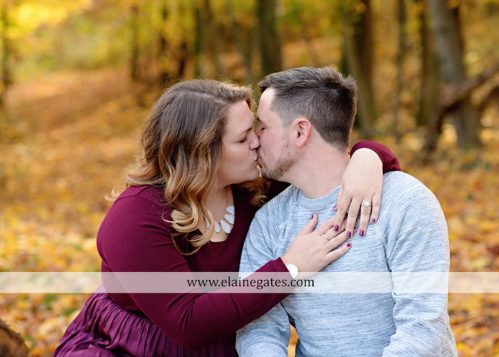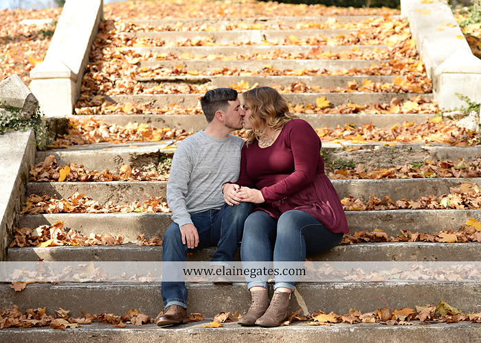 Mechanicsburg Central PA engagement portrait photographer outdoor couple love hug kiss holding hands stone wall fall leaves woods bridge stone steps logs trees {Taylor F.}