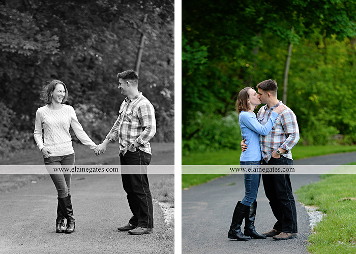 Mechanicsburg Central PA engagement portrait photographer outdoor couple love hug kiss holding hands field grass barn road path rocks water creek stream woods forest {Andrea K.}