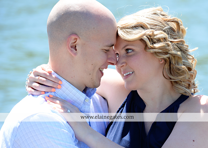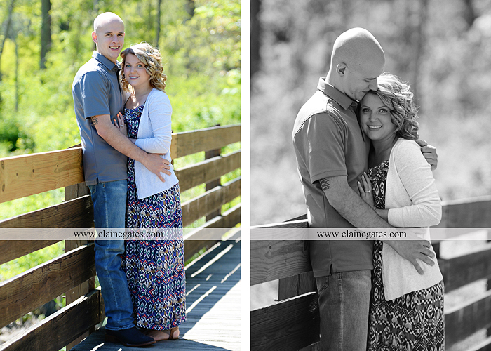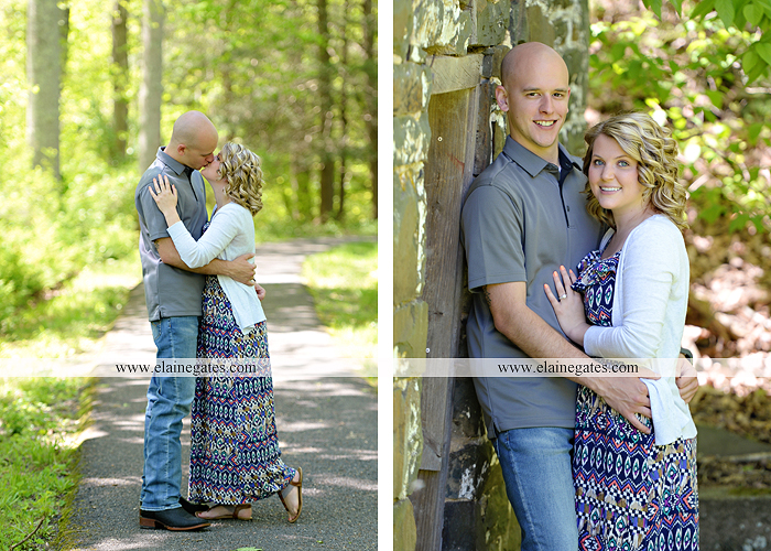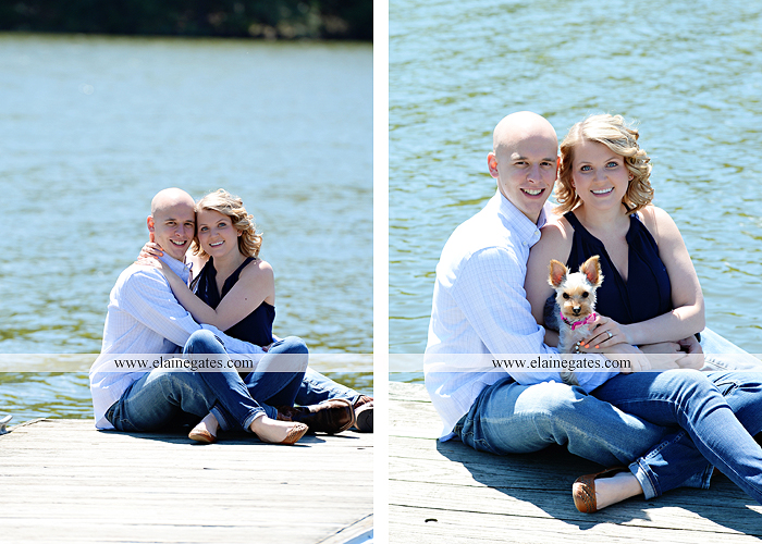 Mechanicsburg Central PA engagement portrait photographer outdoor couple love hug kiss holding hands fence bridge path trail woods forest lake dock water dog trees {Chelsea Z.}