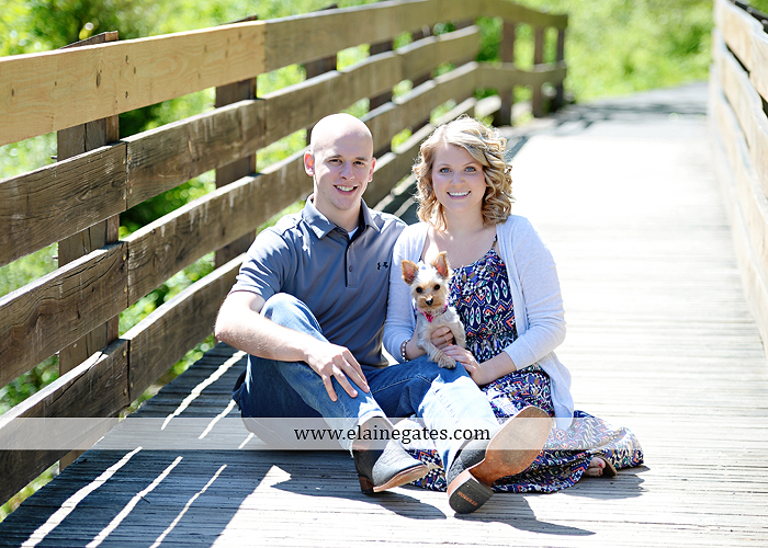 11 Jul Mechanicsburg Central PA engagement portrait photographer outdoor couple love hug kiss holding hands fence bridge path trail woods forest lake dock water dog trees {Chelsea Z.}