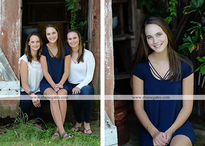 Mechanicsburg Central PA senior portrait photographer formal outdoor girl female iron bench sisters field barn ivy orchard wooden beams {Morgan C.}