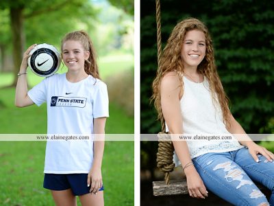 13 Sep Mechanicsburg Central PA senior portrait photographer girl female steps road field fence tree soccer Penn State PSU Nittany Lions wooden swing iron bench hammock grass wildflowers brick wall stone wall {Jadyn Z.}