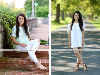 Mechanicsburg Central PA senior portrait photographer girl female steps road field fence tree formal iron bench wildflowers stone wall brick wall gate door water creek stream mother {Lauren C.}