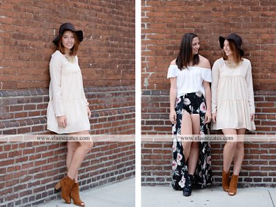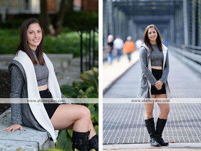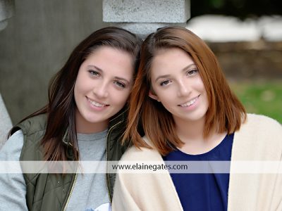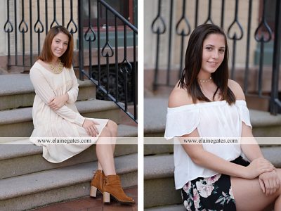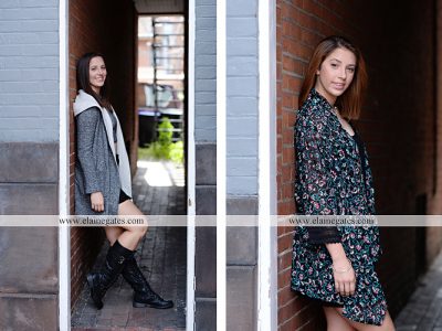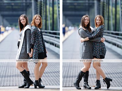 Mechanicsburg Central PA senior portrait photographer female girl twin sisters brick wall urban iron fence steps alley bridge Harrisburg {Bolig Twins}