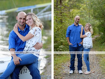 18 Oct Mechanicsburg Central PA engagement portrait photographer outdoor couple love hug kiss holding hands water Pinchot lake boat path forest woods canoe dock dog {Lauren P.}
