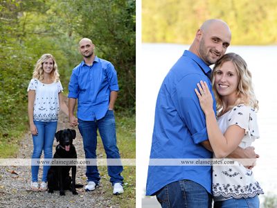 Mechanicsburg Central PA engagement portrait photographer outdoor couple love hug kiss holding hands water Pinchot lake boat path forest woods canoe dock dog {Lauren P.}