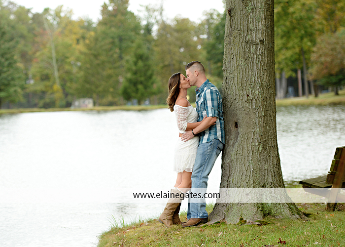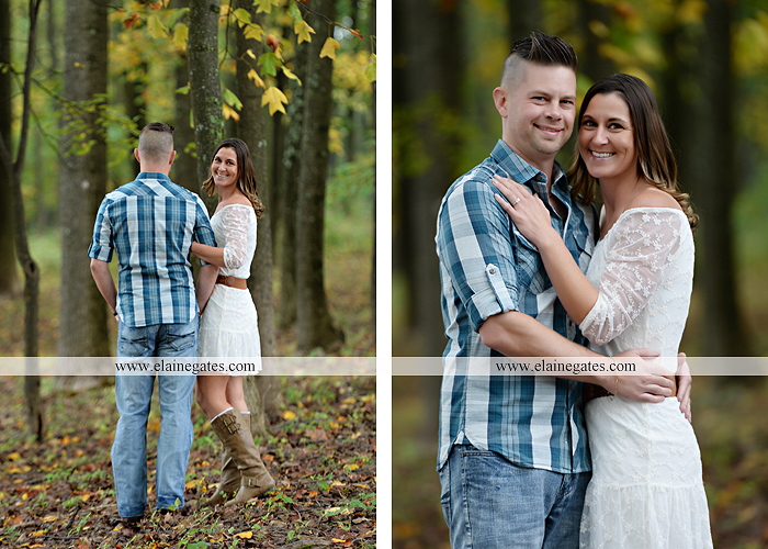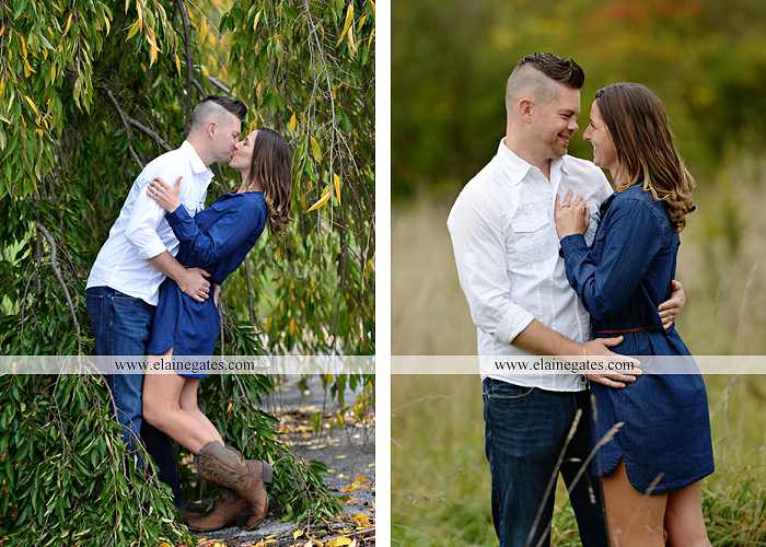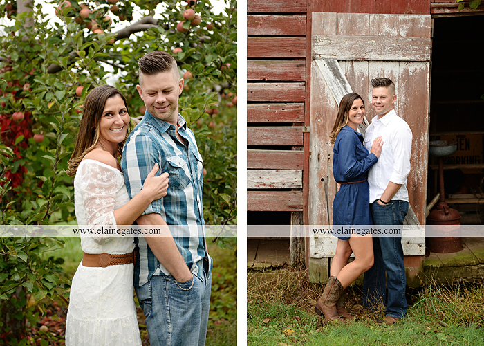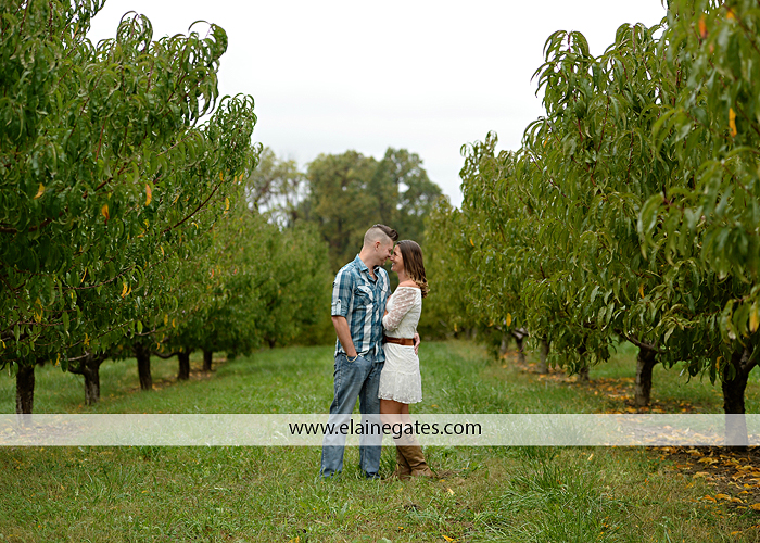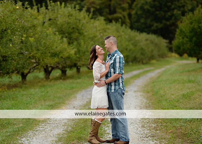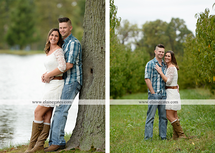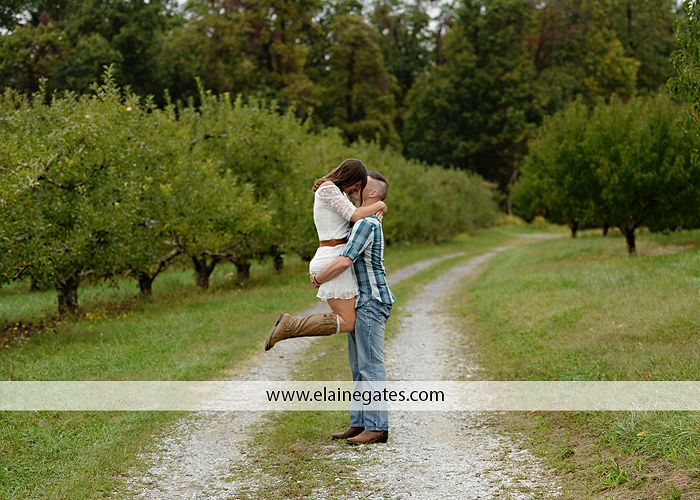 Mechanicsburg Central PA engagement portrait photographer outdoor couple love hug kiss holding hands forest trees water lake fence orchard road barn {Lindsey T.}