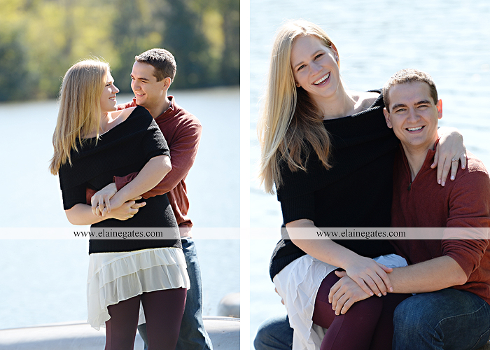 13 Dec Mechanicsburg Central PA engagement portrait photographer outdoor couple love hug kiss holding hands Pinchot State Park water boat canoe lake woods path trees dock ring dogs {Taylor L.}