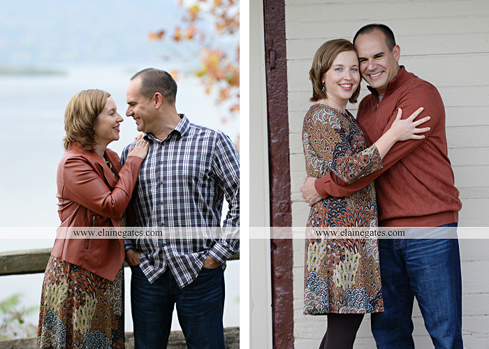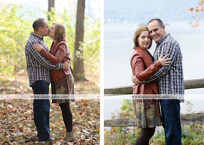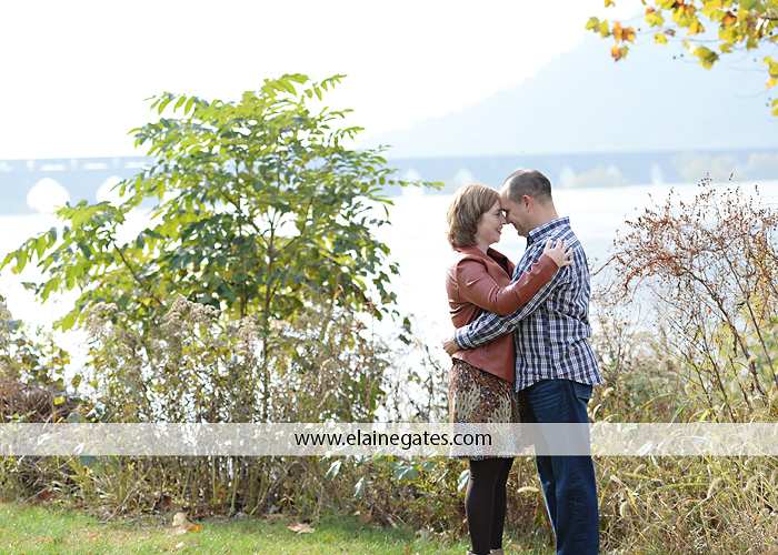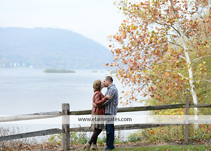 22 Dec Mechanicsburg Central PA engagement portrait photographer outdoor couple love hug kiss holding hands Harrisburg water river fall woods porch fence covered bridge stone wall {Kristen R}