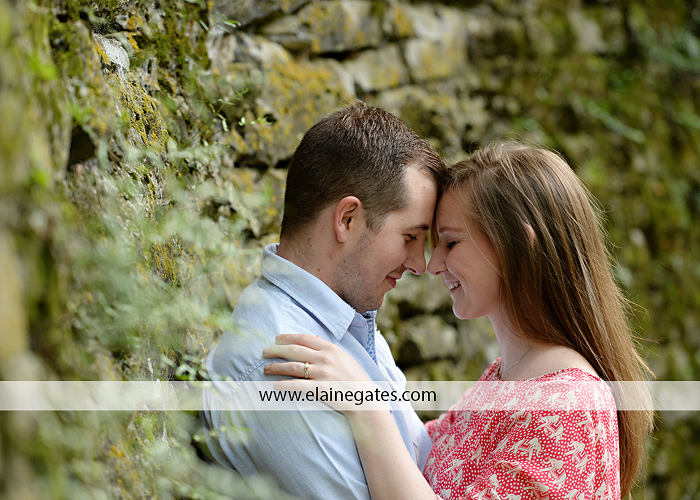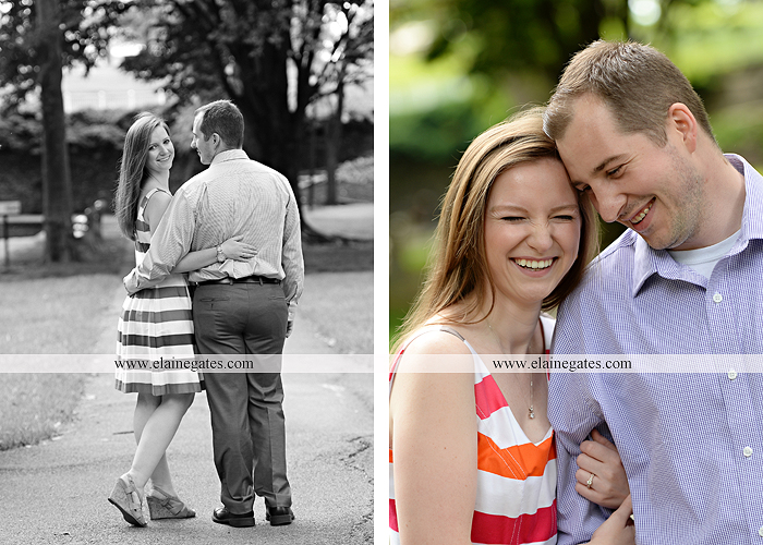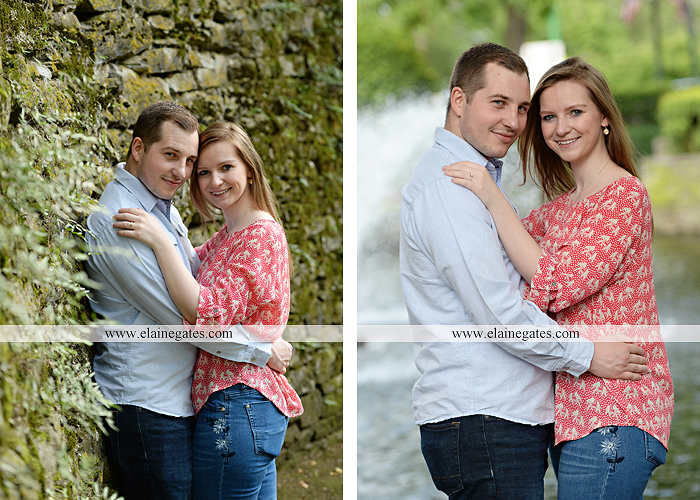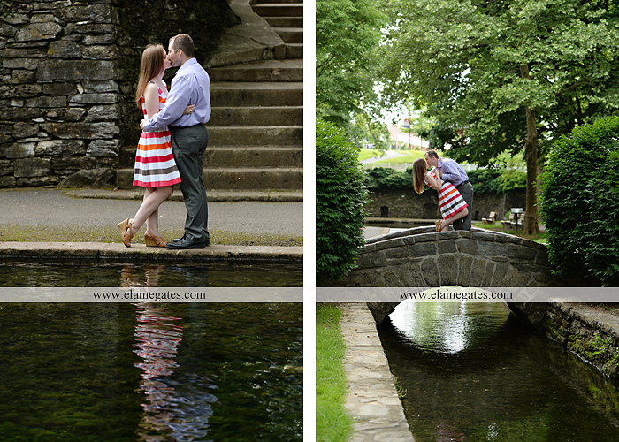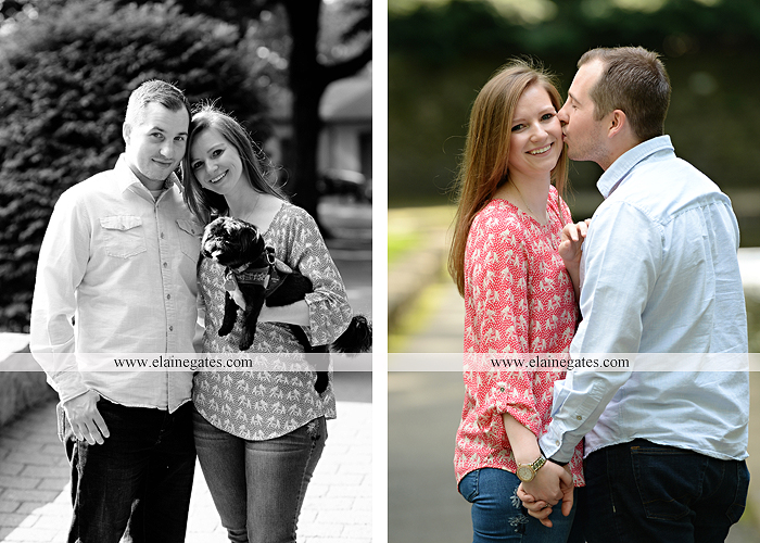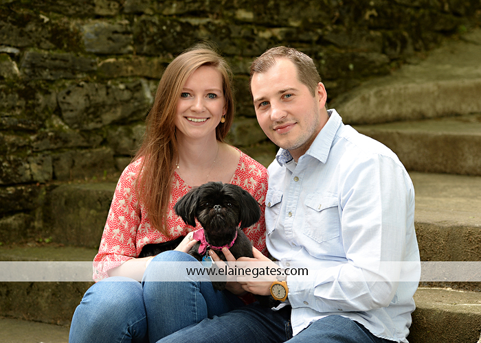 Mechanicsburg Central PA engagement portrait photographer outdoor couple love hug kiss holding hands dog stairs sidewalk rock wall ring water creek leaf {Laura & Tom}