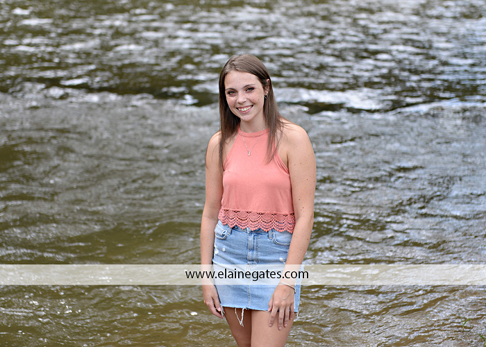 Mechanicsburg Central PA high school senior portrait photographer Class of 2019 female girl Red Land wooden swing formal iron bench wildflowers brick wall grass road fence water creek stream field field hockey sunflowers {Keirstin S.}