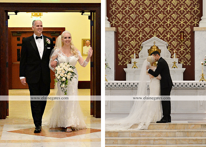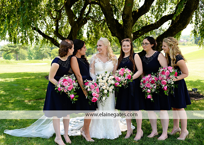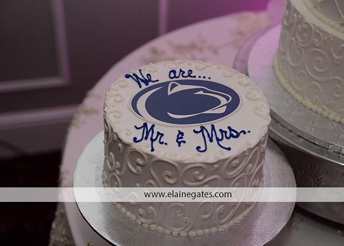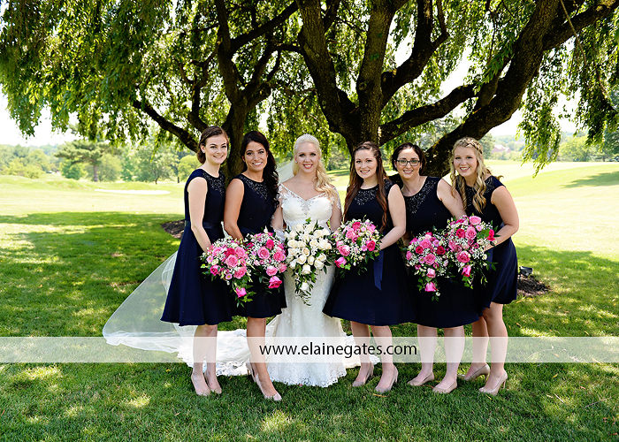 Amy and Paul planned their wedding from out of state with the help of Amy’s mom who lives locally. Amy grew up as a member of the Colonial Country Club, even spending her summers on the country club swim team. Knowing this, it was the obvious choice for their reception. They had a full catholic mass at Holy Name of Jesus Cathedral in Harrisburg, PA. Although the summer of 2018 started out rainy and cool, this weekend we had a massive heat wave and it was one of the hottest days of the year. We had planned to do most of their portraits outdoors on the gorgeous golf course but with the extreme heat it left Amy feeling ill. We opted to do most of the portraits at the church and inside the air conditioning. Even despite the weather, the portraits are gorgeous. You can really see the love they share and how much fun they have together. The bridesmaids wore navy blue and they had pink flowers in their bouquets. Amy’s bouquet was the perfect white on white, classic! Amy and many of her family and friends were Penn State Alumni so there were a few Penn State details. How fun!