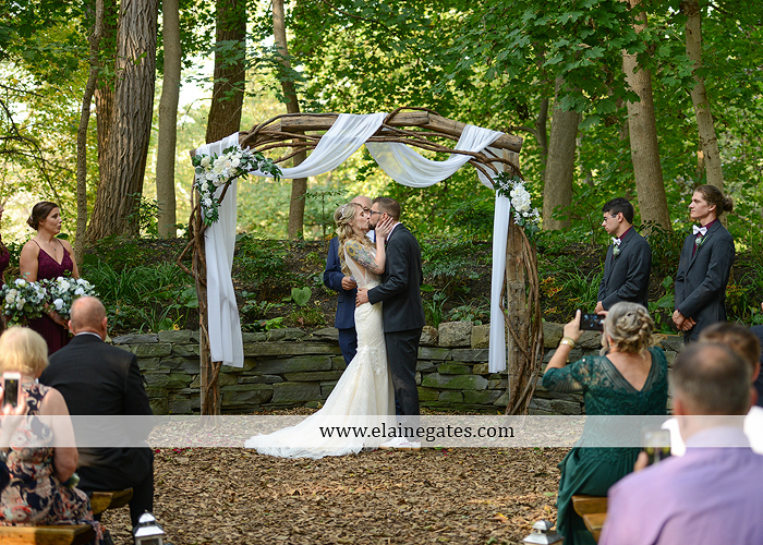 Alyssa and Brandon were married on October 15,2021 at Stone Mill Inn in Hellam, PA. Both Alyssa and Brandon mentioned they were not super comfortable with being the center of attention and didnt love to be photographed. I mentioned my whole goal that day was to change that. Alyssa chose wine colored lace bridesmaids dresses that complimented her gown. I loved the custom hangers she had made for all of her bridesmaids. She bought her groom custom alien cufflinks as his gift. How fun! I loved all of the greenery throughout the wedding decor.