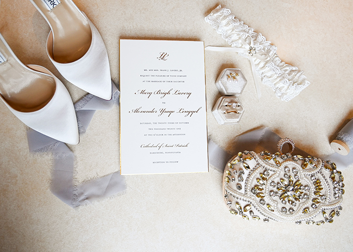 First off, bring your invitation and any other stationary that is specific to your wedding day. If your envelope contains something specific, such as a personalized stamp, calligraphy, or a wax seal, bring that as well! The more details the better.