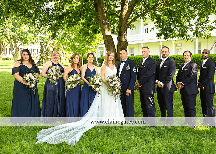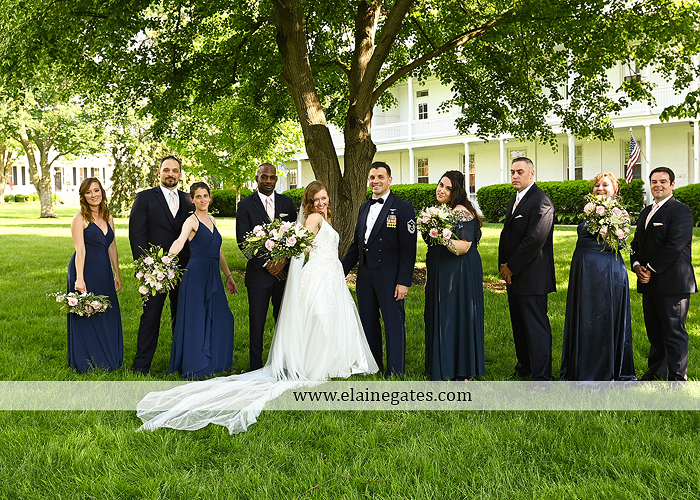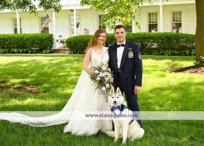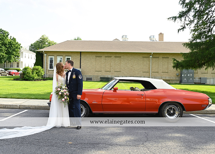 Sabrina & Chris were married on May 21, 2022 at the Carlisle War Barracks in Carlisle PA. They planned their ceremony at the Gazebo in the square and their reception at Letort View Community Center on base. The weekend was an unexpected heat wave. Sabrina’s bridesmaids wore navy dresses that looked amazing with the cascade pink and white bouquets. Chris wore his dress uniform and his groomsmen were in navy suits. Chris is a car enthusiast and brought his newest purchase a beautiful vintage orange Buick.