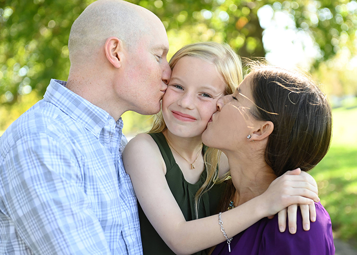 Next, I tell clients to interact! Especially with children, I love natural photos of kids looking up at mom and dad, laughing, kisses, tickles, hugs, jumping into their arms, etc. You could also pick up your child to make everyone be at the same level!