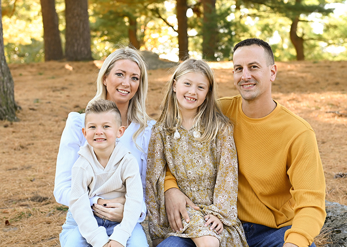 The obvious first pose… Standing! When I take photos, a family’s natural reaction is to stand head-on towards the camera with their hands at their sides. But, to make the shot look a bit more natural, I tell clients to lean in, turn towards each other, hug, laugh, or put an arm around one another. This also helps clients feel a bit more relaxed and comfortable – which reflects in their smiles! Dads, this is the perfect time for you to tell one of your good jokes! (;