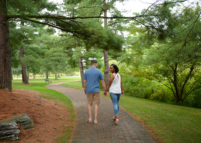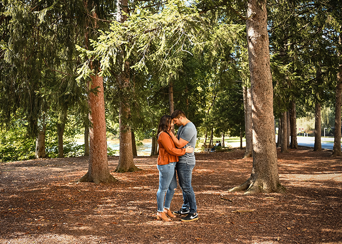 One way to choose your engagement session location would be to pick a place that has sentimental value. Think about your love story… did you take your first date at a certain park? Did you get engaged someplace scenic? Did you meet in high school or college that’s local? Is there something you love to do as a couple? Let’s try and tailor the location to be as unique as you are as a couple. Possible locations are your former campus for high school or college, and a lake that you both like to kayak on. Is there a park you both love to run at or take your dog for a walk? Did you have your first date downtown… if so, maybe a cityscape engagement session would work?