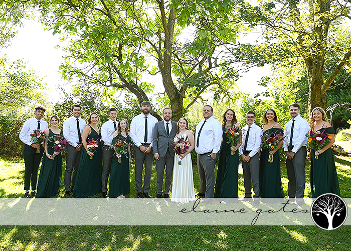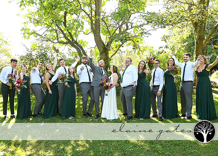 Lia and Derek celebrated their love with a charming vow renewal on September 16, 2023, at the picturesque Battlefield Bed and Breakfast. Lia’s bridesmaids rocked elegant floor-length dark green dresses, while Derek and the crew sported dashing grey suits adorned with matching green ties. Oh, and let’s not forget their adorable pup, stealing the spotlight for some sweet portraits!